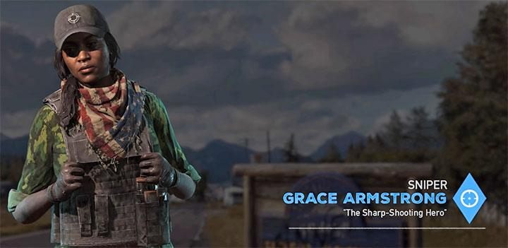 Grace Armstrong is the third specialist in the game. You can quickly recruit her after you have helped her defend the church. Grace is perfect in situations where elimination of enemies at long range is needed (e.g. to secure an outpost). She is perfect with her rifle, although her performance depends on the vantage point she takes.