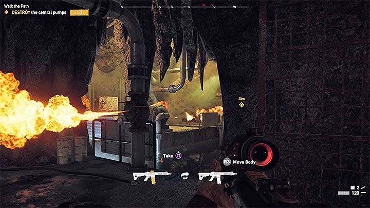 Turn off all the valves and reach the passage marked by the game. Your new objective is to destroy 3 pumps. As always, you should start with eliminating at least some of the enemies (they are under the influence of the Bliss). The pumps can be destroyed with a weapon or explosives.