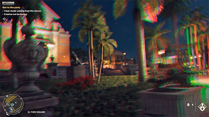 You must now head towards the church. When you get there, chat with the DJ and hold down the interaction button to drink the alcohol you have.