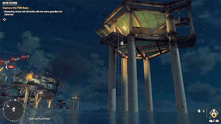 You can also complete the optional objective for capturing the platform by emptying the red tanks - interact with the valve by the fuel tank.