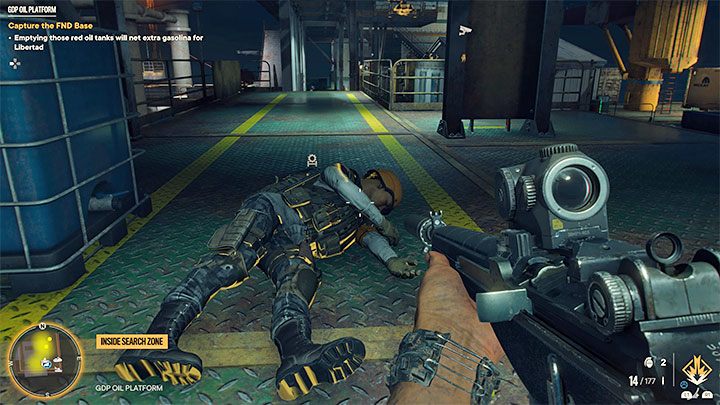 If you want to explore the oil rig in 100% and capture this location (it is one of the FND bases), then locate the enemy officer. He is carrying a Server Room Keycard that will allow you to search the restricted area of the platform.