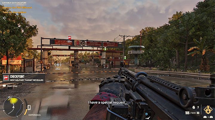 You need to get to El Presidente Square with the large statue of the tyrant - this area is south of the city of Esperanza , and you should expect at least one enemy outpost along the way. It is best to secure it, so that you will be able to get to the capital more easily later in the campaign.