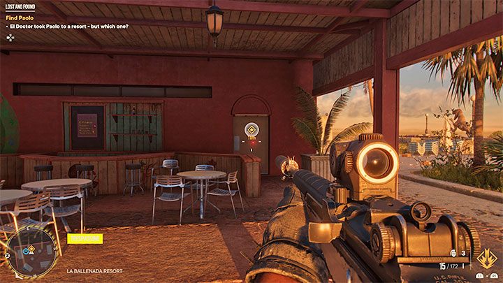 You can explore the locations on the map in any order. Walk around the resort (the area marked by the yellow rectangle on the radar) to determine if Paolo is in the area. You don't have to eliminate the enemies you encounter, but they may of course interfere with your exploration to some extent.
