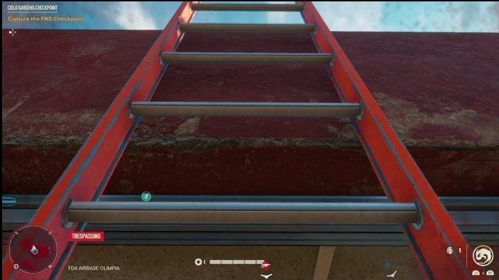 This flash drive lies on the very top of a building, on a metal object. You must climb a ladder to reach it.