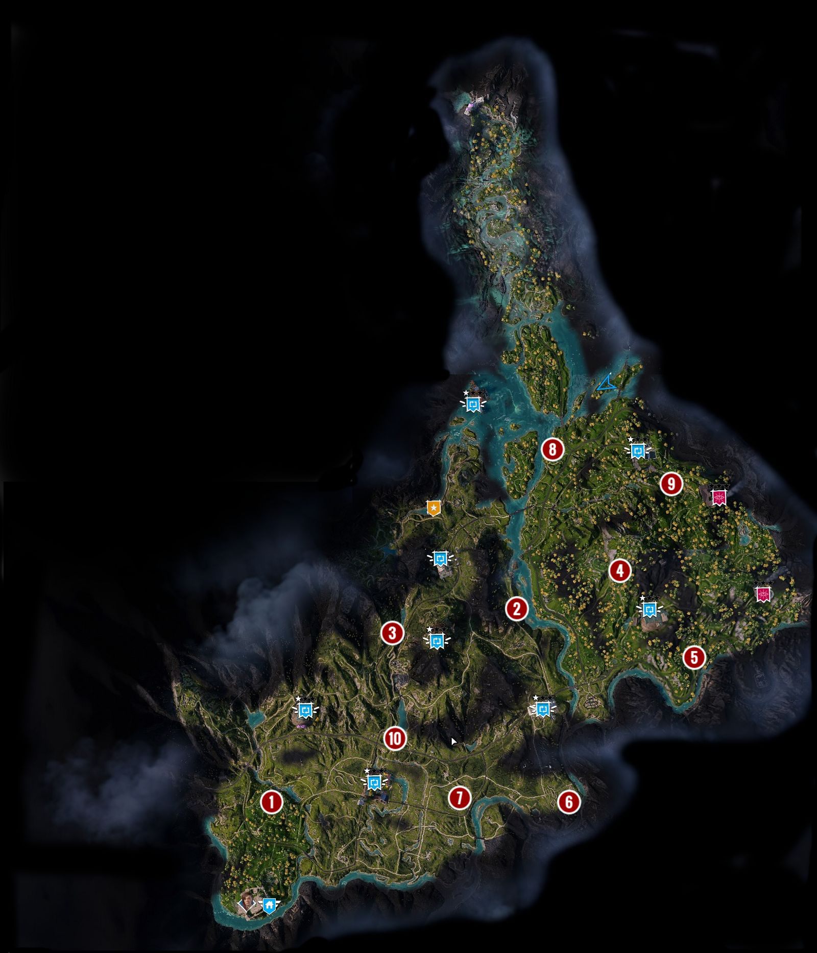 After defending Prosperity at the end of Act I in Far Cry: New Dawn, you'll receive a mission to find 10 MP3 players. The map above shows the locations of the players.