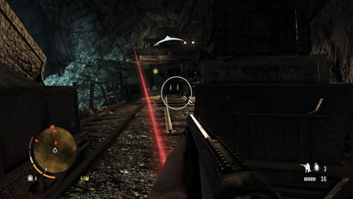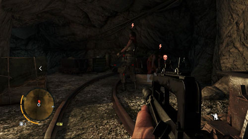 Go straight ahead to reach a cave. There is a group of enemies here, including two snipers. In order to hide from their bullets, push over wagon after wagon, while getting closer and closer to them. Also, watch out for pirates on your left.