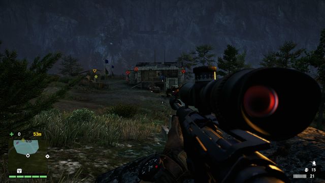 Watch out in the narrow passage, as there are a lot of enemies incoming. You may have some troubles with the snipers. You can take the risk and quickly run outside. Get into the car and if you're lucky, you will safely drive away. To eliminate the risk and make sure that you complete the mission, first eliminate the snipers (a sniper rifle will be of use). You will find them opposite the entrance, between the trees. It will be much easier for you to escape after you kill them. If you cannot escape, you have to eliminate all of the enemies or at least most of them. Don't let the soldier with the flamethrower catch you and watch out for the grenades.