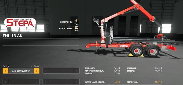 There is one additional model that allows you to transport and load bales - Stepa FHL 13 AK. This trailer is in Forestry Equipment category. Purchase modifications for this trailer to get a modified gripping claw and under-carriage for placing cylindrical bales.