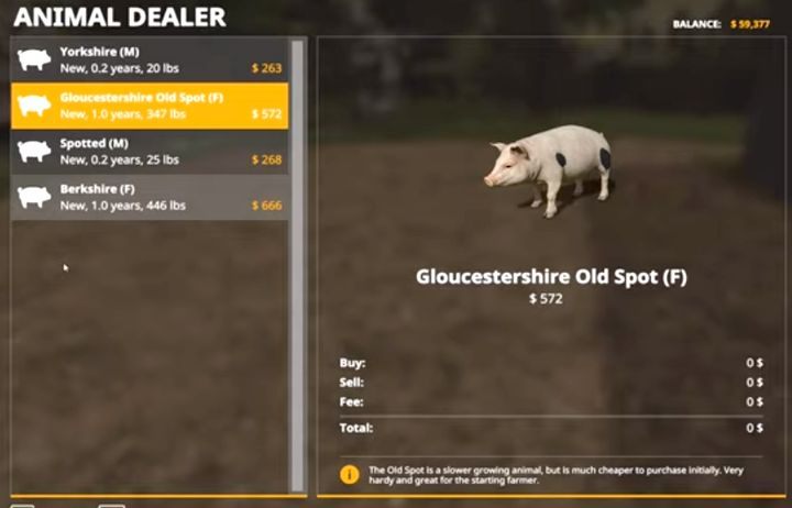 Purchase young males to fatten them up quickly and be able to sell them at a high profit. If you buy females, it is rather a long-term investment: they do not gain weight quickly, which means they also need less food. They will allow you to create new individuals in the farmstead.