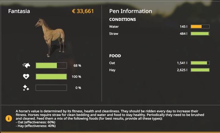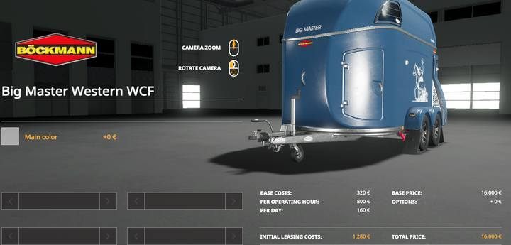 Horses can be bought later, by standing in front of the stud farm or transporting them from the store in a horse trailer (Bockmann Big Master Western WCF - it holds 2 animals). If you buy them at the stud farm, you will pay an additional $300 per animal. One horse costs $5000.