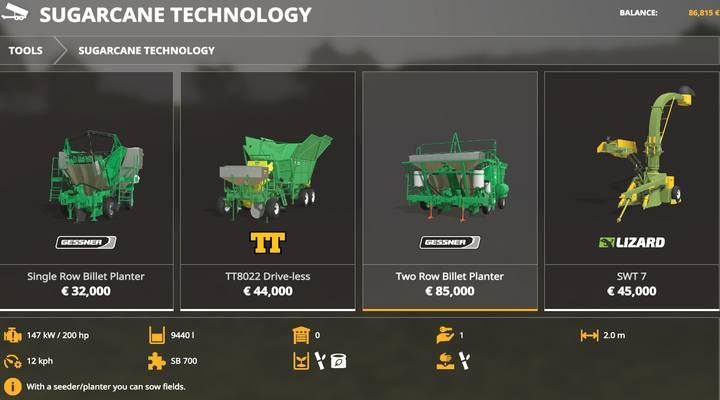 Two cheaper models of cane planters: Gessner Single Row Billet Planter and TT8022 Drive-less only differ in capacity and required tractor power. But the third model: Gessner Two Row Billet Planter has 2x more planting capacity. Cane can be planted on any defended field, even on the uncultivated field. <Reed does not need to be planted a second time - it grows back itself. That's why you don't need to forcefully buy more expensive planters - a good option will be to lease them. Cane planters can be filled with a cane from the previous harvest, just like potato planters.