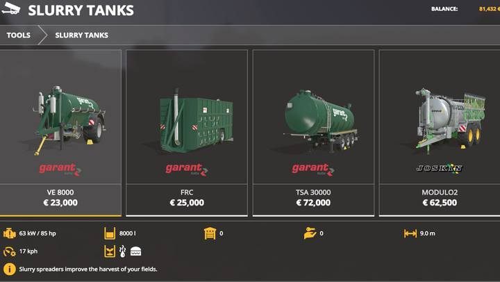 As the first machines in this shop category, you will see cheap tanks Garant FRC and TSA 30000. They are not used to distribute fertilizer, but only to transport it to collection points or in the vicinity of remote farmland.