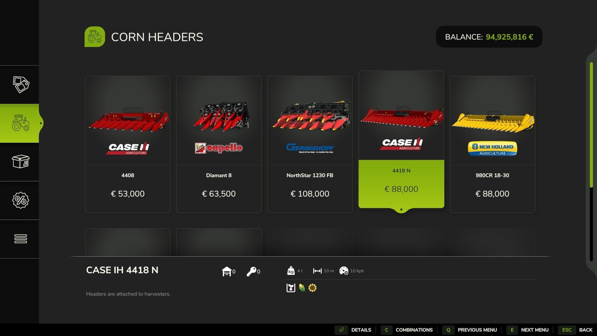 - Spreader and lime (optional) - every third harvest or so you should do lime spreading, which will give you a big bonus to your harvest. Equip yourself with a lime-compatible spreader (limestone icon in the store) and the lime itself.