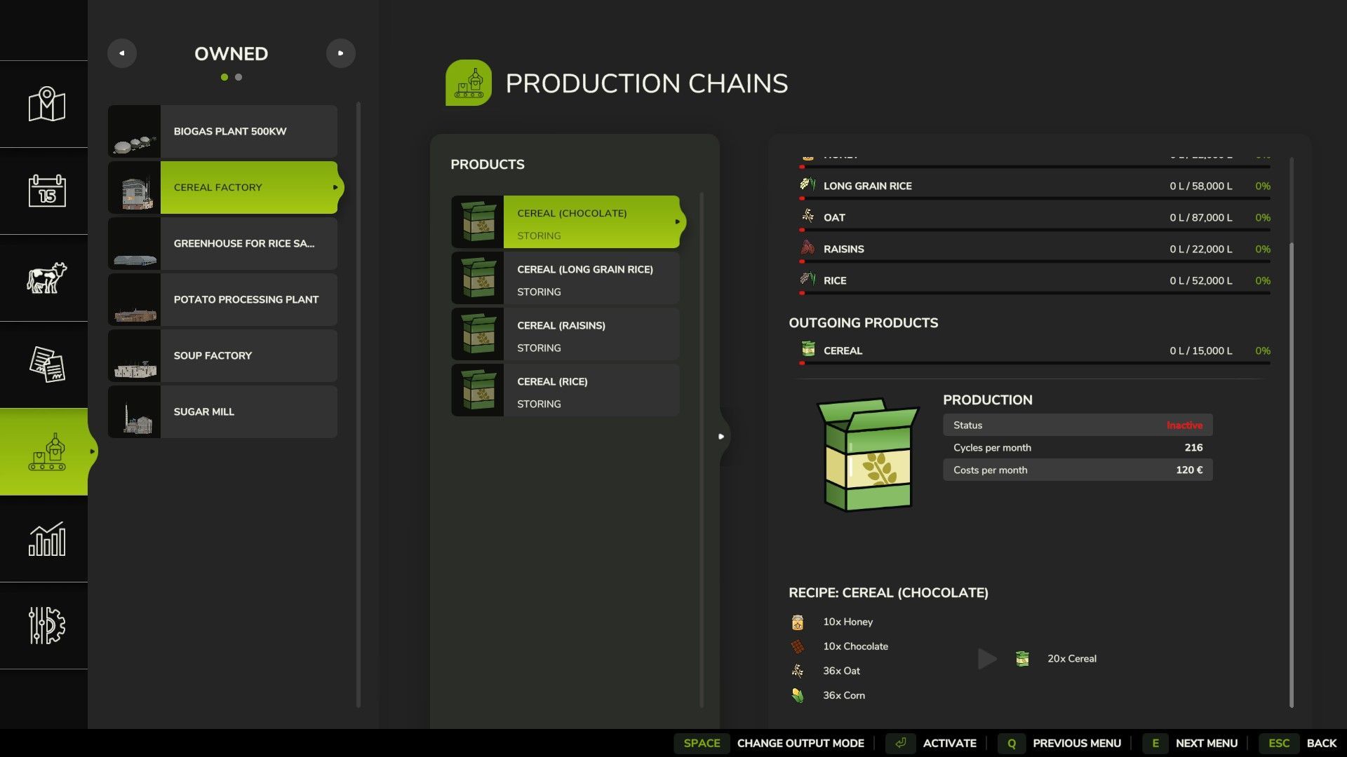 Corn can be planted in April and May and harvested in October and November. It's best to sell it in January - at that time it's worth around 1,500 euros per ton. If you also have access to honey, oats and chocolate/raisins, you can start processing the corn into breakfast cereals in a cereal factory, which can be sold for around 12,000 euros per tonne. Corn can also be used to feed pigs.