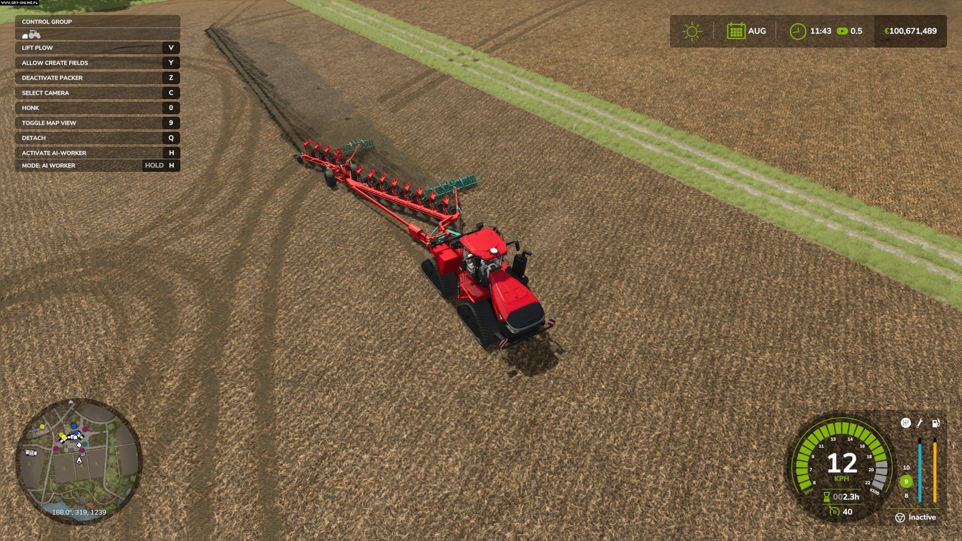 Plowing involves turning over the top layer of soil using a plow, subsoiler or a spader. These tools can be attached to a tractor and dragged across the field over bare ground to prepare the soil for cultivation. However, this is a job that requires a high-powered machine, which will be capable of pulling a heavy tool buried in the ground. It is also worth buying and installing a counterweight (press C on the keyboard when choosing a plow or subsoiler in the store) - without it, some machines may turn out to be too heavy, tilting the tractor backwards and preventing it from moving.