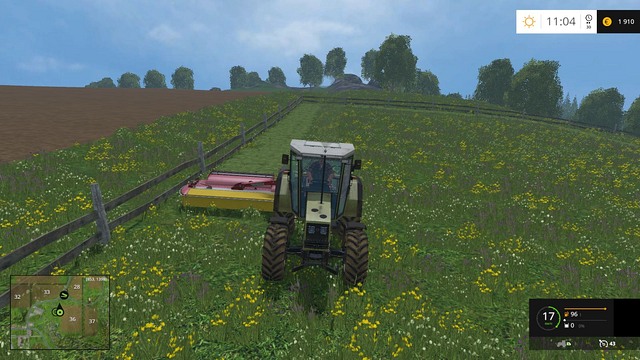 After accepting a mission, drive the tractor with the mower to the right place (near field no. 36 or near the circus in the north-eastern part of Bjornholm map). Mowing is very easy- first, lower the machine [V], next, switch it on [B]. Try to mow by driving in circles. You don't have to be very accurate and such system will allow you to turn around quickly. If the mission doesn't end, you've probably left too much grass. You can either collect the grass or leave it. To complete this mission, you need the mower mentioned above. There's also a better model, but it's twice as expensive (FC 100300 - 52 000$). It was wider working width, but if you use a mower only for completing missions, you shouldn't waste money. The field you mow is not so big so the cheaper model will be enough.