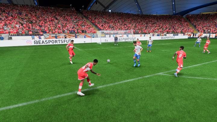 When the ball is flying at the right height, most players in FIFA 23 will try to perform a header. This type of play can happen primarily when you play the ball into the penalty area with a regular cross or when you are performing a free kick from the corner.