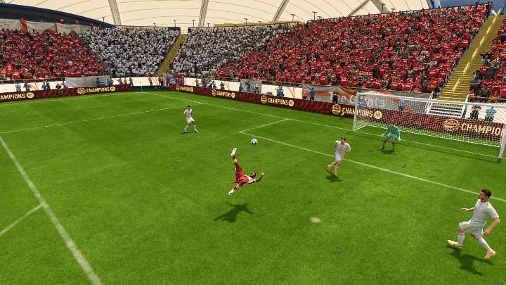The signature shot (L2 O / LT B), as the name suggests, is aimed at making a show. When this move is performed by more technically trained players, it is truly spectacular. Depending on the height at which the ball is addressed to the striker, the player can shoot with a overhead kick, bicycle kick, volley or even a scorpion kick.