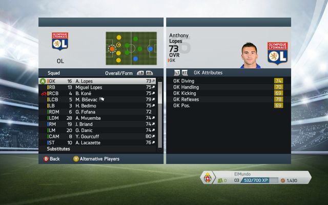 You can set the basic team which will appear on the field at the start of the match and also the ones that will wait in line on the bench, ready to change the ones which don't fulfill your expectations on the field or fit your strategy during the marc. Of course the main factors deciding whether or not a given player is usable is whether he's suitable for a given position and his stats. You can't forget about other factors that decide who is best for a given role - stoppers should have good strength and jumping, with wingers sprint speed and agility are important, while a good attacker should have great acceleration and reactions.