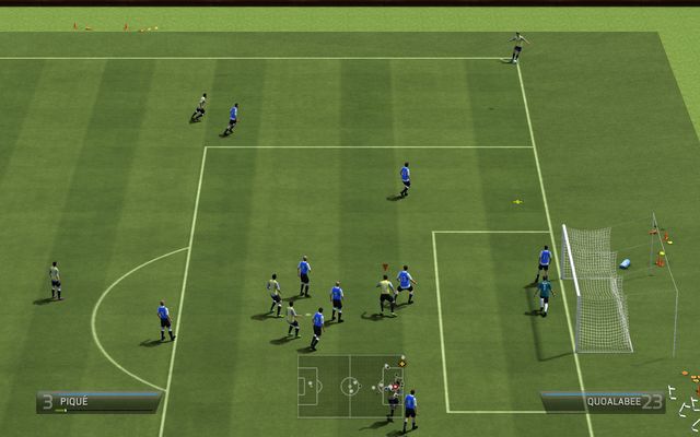 A low cross can be useful to play the ball to the near post towards an incoming player who can try to surprise the enemy goalkeeper with a sharp angle shot. To perform a low cross, press the throw in/cross button twice.