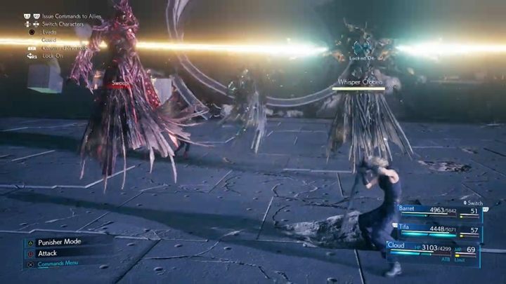 Then you have a short fight with Whispers who have returned to their normal form. Once they are defeated, Barrett will inflict damage to the main boss.