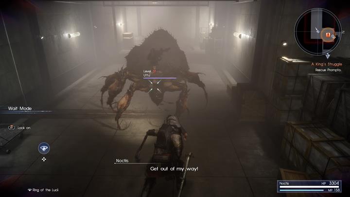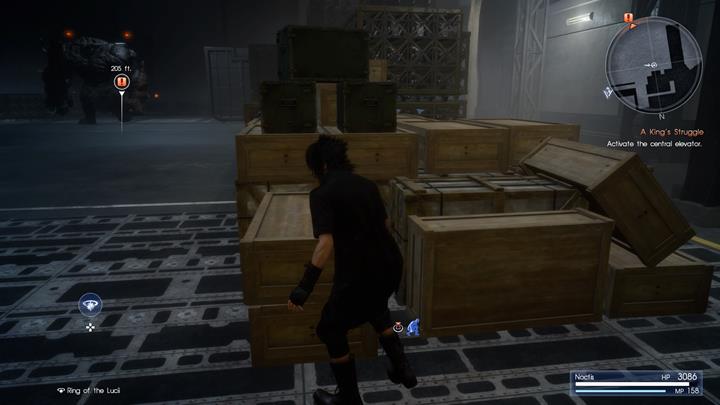 Run towards the marker on the map. The train car will crash down once you run under it, forcing Noctis to travel alone from now on. Daemons will appear again - get inside the train car and run straight ahead to reach the other side. Afterwards, run up the stairs where Noctis will finally decide to put on the Ring of Lucii.