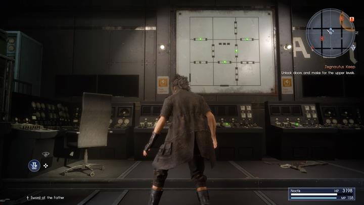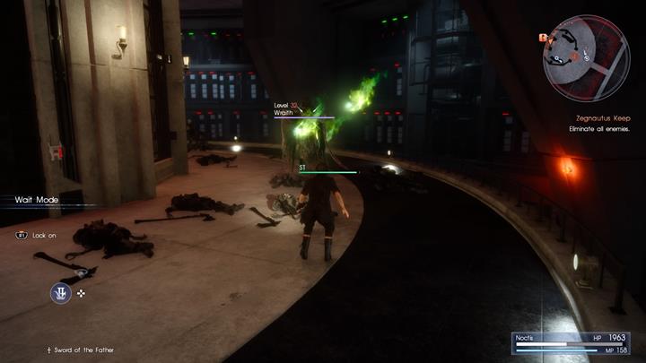 Once you regain control over the character Noctis will pick up a sword - Sword of the Father. You will now be able to fight the daemons using the weapon. This increases your repertoire and should make encounters a lot easier. Continue through the corridors and you will reach a place filled with poisonous gas - it reduces Noctis' health points each second when the prince is in the gas. Additionally, some weaker enemies will spawn in the area. Reach the room with the control panel and cut off the gas.