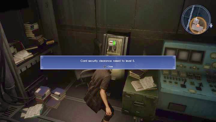A long walk awaits you now, until you reach a room where you can increase the clearance level of your access key to level four. Additionally, you can resupply your items at the vending machine-like object.