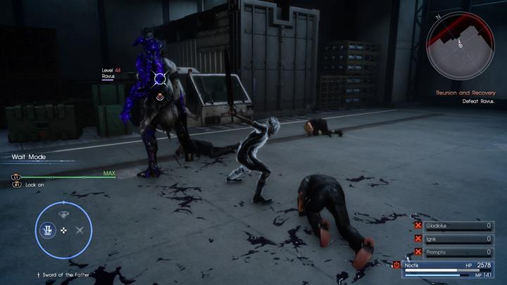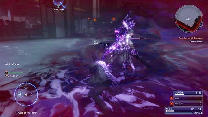 However, when the enemy starts accumulating dark energy you have to quickly run away from him - after a short moment a burst of energy will damage everyone near Raven. Additionally, the enemy will try to immobilize you - when a pool of dark energy appears under Noctis you have to roll away from the spot. At the end of the encounter the enemy will start attacking with a powerful slash attack, followed by a shockwave (this will replace the standard, downward sword attack he performed up to this point). Prepare for a long battle, during which you won't be able to count on your teammates as they will be dying all the time.