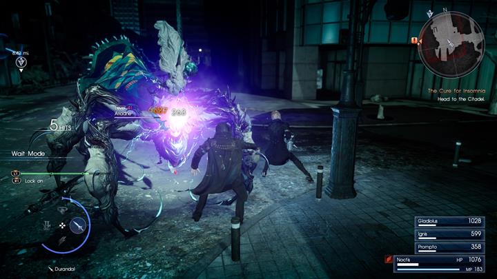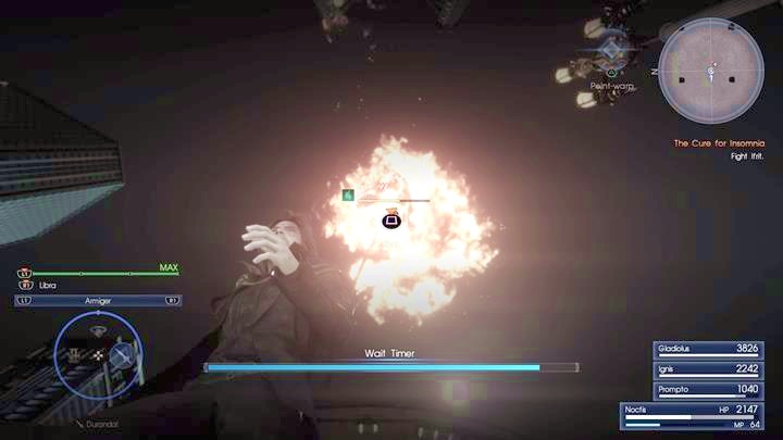 The enemy should soon be dead. Use the rest room next to the entrance to the capital and don't forget that you can use Umbra to get back to Lucis to resupply, as there are two more encounters awaiting you here. Once you're ready, get through the gate and run towards the building.