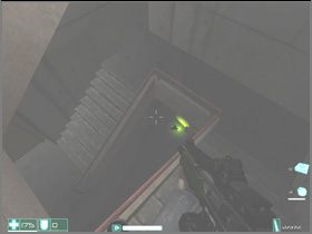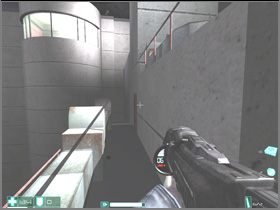 On a table there's a laptop - copy the data and walk further in the corridor. Before you go up the stairs, you can visit the room on the left - there are two RPL Sub-Machineguns there. Anyway, use the stairs and once you're up turn right.