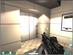 Two will run out of the elevator on the left. The best option is to go along the wall on the left once you're downstairs, and kill them using a shotgun or by some kicking. Anyway, take their weapons (a VK-12 Combat Shotgun and a G2A2 Assault Rifle). On the right you'll also find a 10mm HV Penetrator and an AT-5 Proximity Mine. Go and open the door on the right.