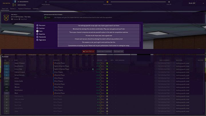 Before accepting the substitution, you have the opportunity to conduct a quick talk with the player who is about to enter the field. It's worth to use this option to ensure that your player is properly motivated.