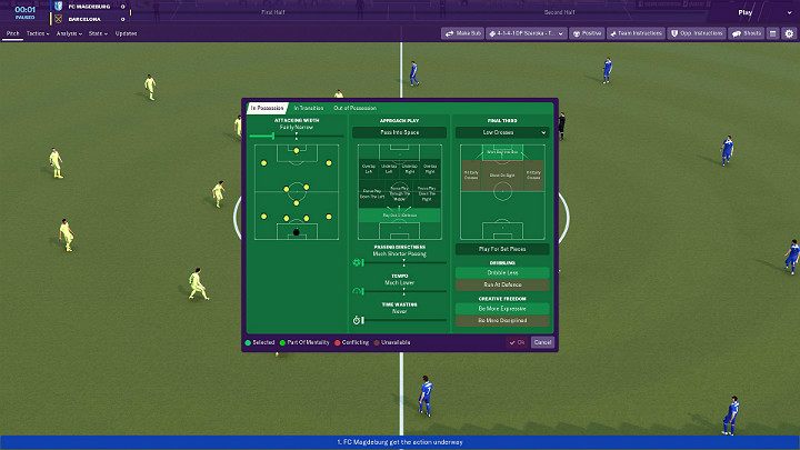 The match interface in Football Manager 2019 is clear and allows you to efficiently respond to the current situation on the field. Below you will find a description of all relevant options.