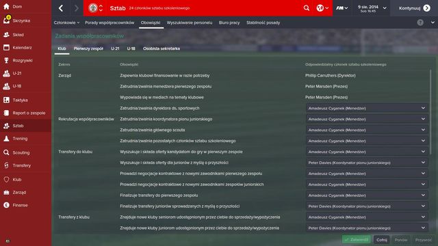 Even if you would like to control every single aspect of your club, it is simply impossible. If you would try anyway, the effects wouldn't be too good. That's why you should give some of your responsibilities to other coaching staff members. You should definitely entrust them with managing the junior teams - while taking care of the first eleven, you might not keep up with the needs of the youngest ones. Here you can order your secretary how to sort transfer offers.