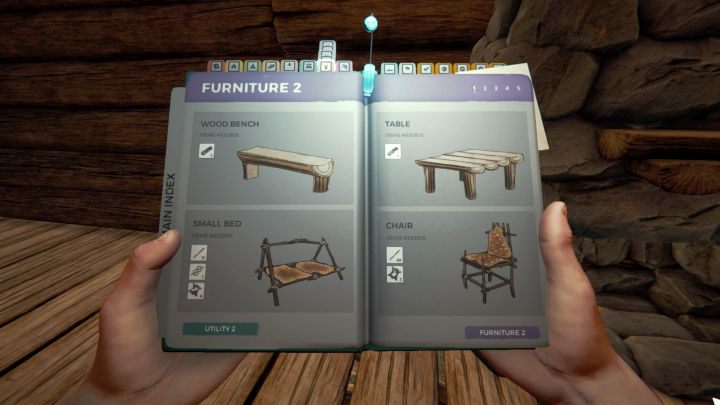 - Chair - a chair that has the same abilities as a Bench. You can rest here, regenerating lost energy. The chair takes up less space than a bench, but it is much more difficult to construct.