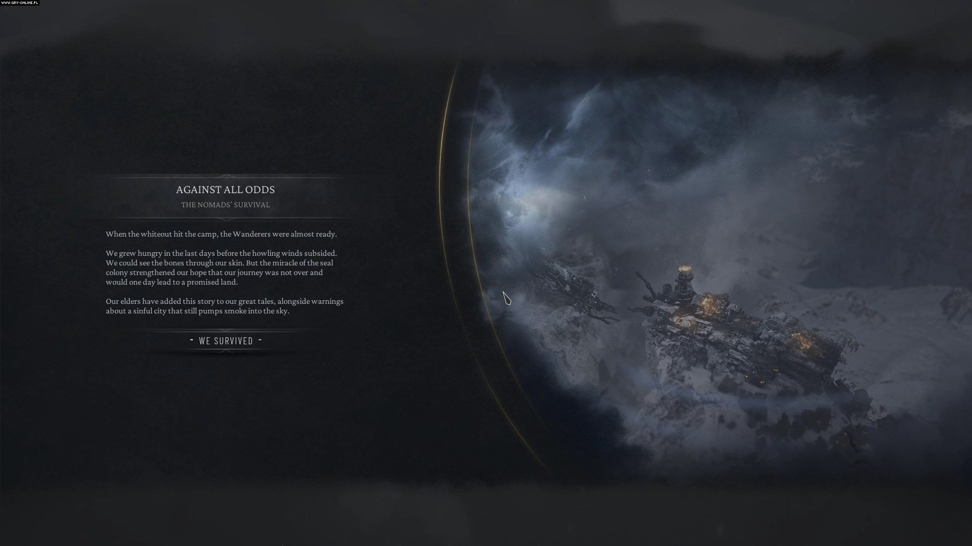 - Comment: You can get this achievement during the second chapter. During the whiteout, food production decreases significantly, so you must concentrate on producing food throughout the entire chapter and stockpile enough food to last until the whiteout is over.