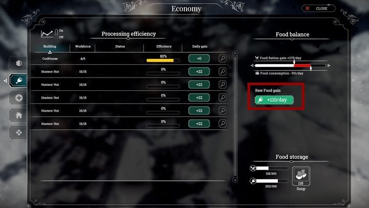 Besides coal, food is one of the most important resources. It is impossible to create a functioning city without it. In Frostpunk, it is also important how your food is prepared.