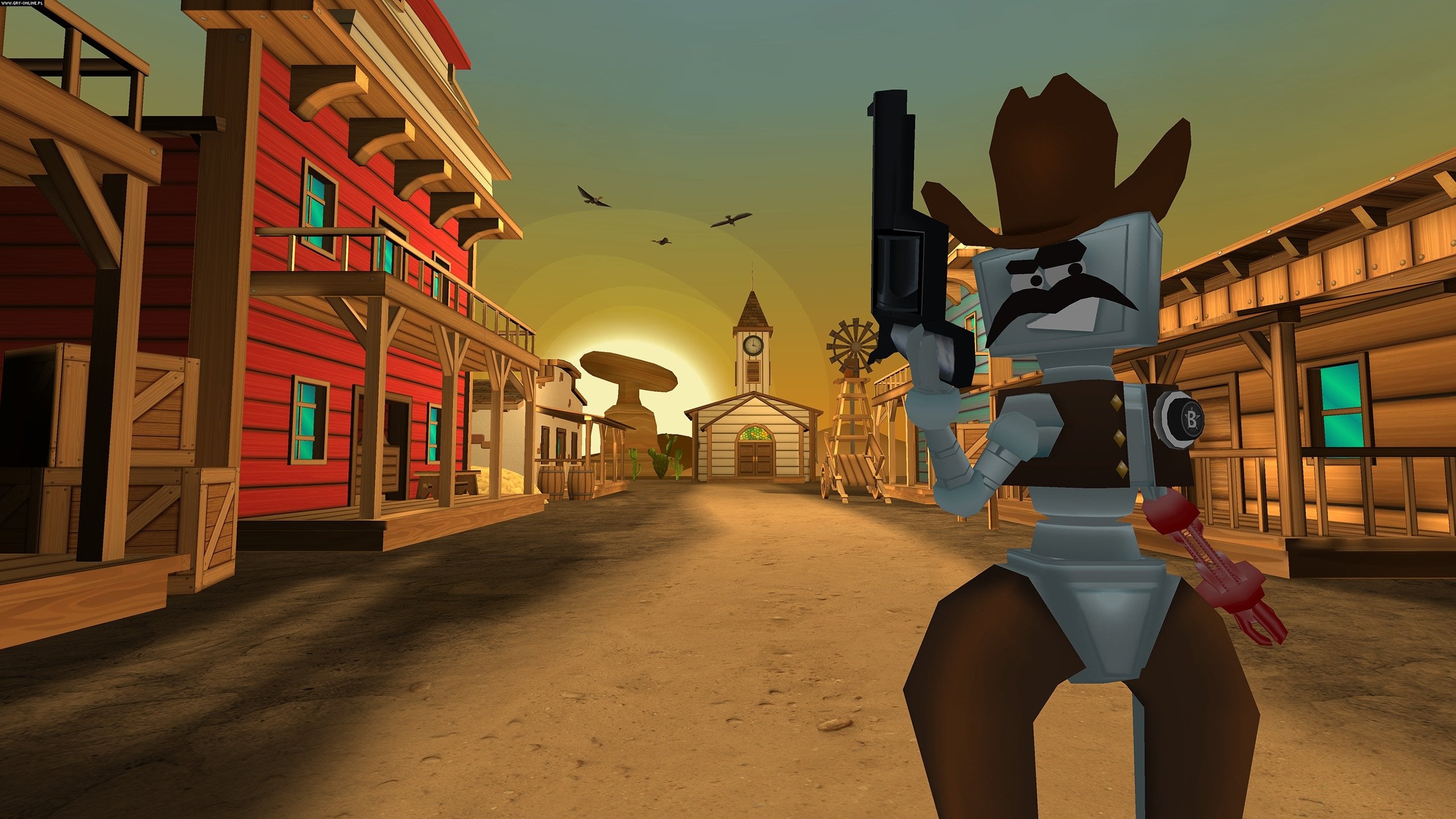 The unique levels are inhabited by unusual characters - one floor can be a home of a snowman, another can be a fantastic, vegetation-filled land, futuristic territory occupied by a robot, a gloomy cemetery, or even a scenery taken straight out of a classic western inhabited by a mechanical cowboy armed with a revolver.
