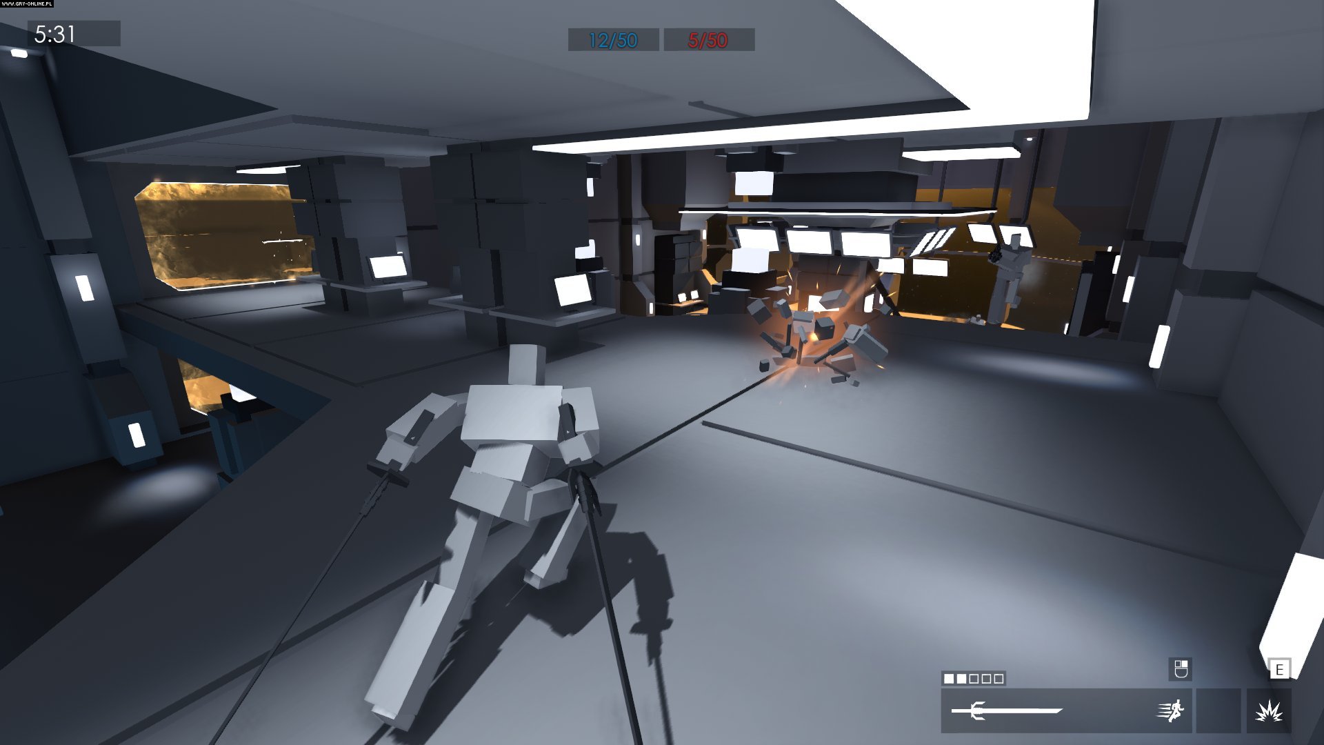 Minimum is a network shooter by TimeGate Studios team. The game is characterized by minimalistic graphic design, and most of the objects consist of simple, monochromatic solids. Production is based on a free model with micropayments.