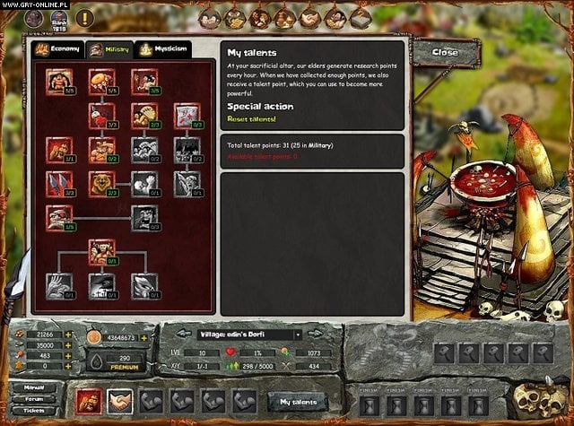 In Stone Age Kings there are also three trees of sediment development. Depending on the strategy adopted, we can allocate special talent points to a military, economic or mystical branch. In this way, for example, we can increase the resistance of our units or increase the rate of collection of raw materials. In addition to the view of the village itself, you can move to the world map, where you can see other settlements and caves at any time. During the game we can both form alliances with other players and conduct regular wars with them. On the map there are also settlements controlled by artificial intelligence.