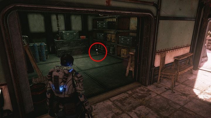 Go to towards the gate and enter the armory, which was previously unavailable. A component is lying on the ground, in the corner.