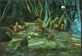 The passage ends with a branching. Choose the left path and pick up the sniper rifle. In a second you will have an occasion to test you shooting skills on the running Locusts.