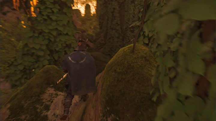 Continue your journey. You need to reach another location where Jin can jump to the interactive edge. Move as far as possible to the right, jump on the branch and after climbing up, jump again.