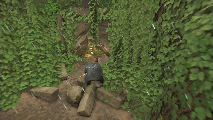 Turn right and jump towards the stone steps. Take the linear path that involves slipping through the hole. The FPP mode will be activated for a few seconds.