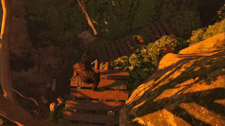 Run along the boards and after reaching the other end of this ledge, jump down to the lower path.