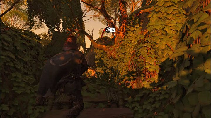Stand on the branch in the position pictured in the screenshot above. You must jump towards the marked hook and latch onto it in mid-air bypressing R2. Swing on the ropes and land on a remote wooden path.