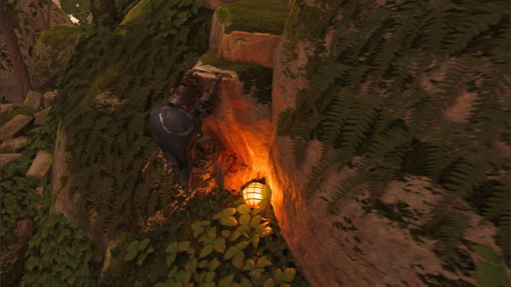 Once out of the tight area, go straight ahead and then make a sharp right turn. You will reach more interactive edges near a lit lamp - climb to the top.
