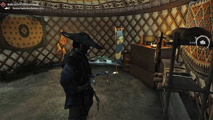 Upon reaching Komatsu's forge, meet the monk to automatically hand over the collected banners to him. You will be able to select a new saddle from the list and it will automatically be placed on the hero's horse.