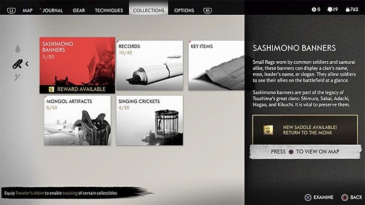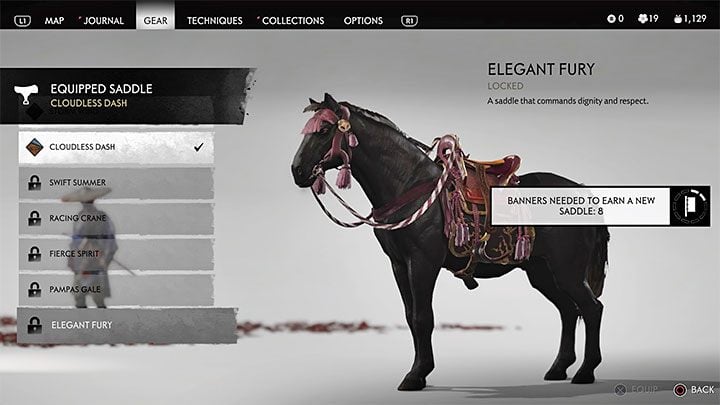 While collecting banners, wait for information about the possibility of picking up a new saddle. It will appear every time you collect a certain number of banners from the 80 scattered around the game world. The first such announcement will be made after 5 flags have been collected.